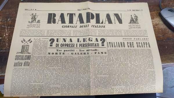 Rataplan giornale degli italiani. Settimanale. Disponiamo dei seguenti numeri 1 (dal 10 agosto 1946)- 3-4-5-6-9-10-11-12.