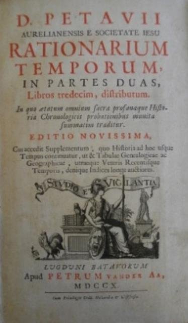 Lugduni Batavorum, Petrum Van der Aa, 1710. In 8vo, doppia antiporta con doppio ritratto dell’Autore incisi a p. p., front. con titoli in rosso / nero, pp. 919 + indici, leg. in pelle marrone con dorso a cinque nervi, titolo e fregi in oro, 5 carte geografiche ripiegate in b/n f. t. illustrano il mondo antico comprendendo l’Europa, il Nord Africa, il Mar Mediterraneo, l’Asia Minore e il Sud della Russia; diverse incisioni con ritratti e medaglioni in b/n n. t. Non comune opera del gesuita Denis Petau, esemplare completo delle tavole. La prima edizione è quella di Parigi del 1633. Tracce alla legatura e uniforme brunitura delle pagine, tavole con alcune pieghe ma nell'insieme buon esemplare. .