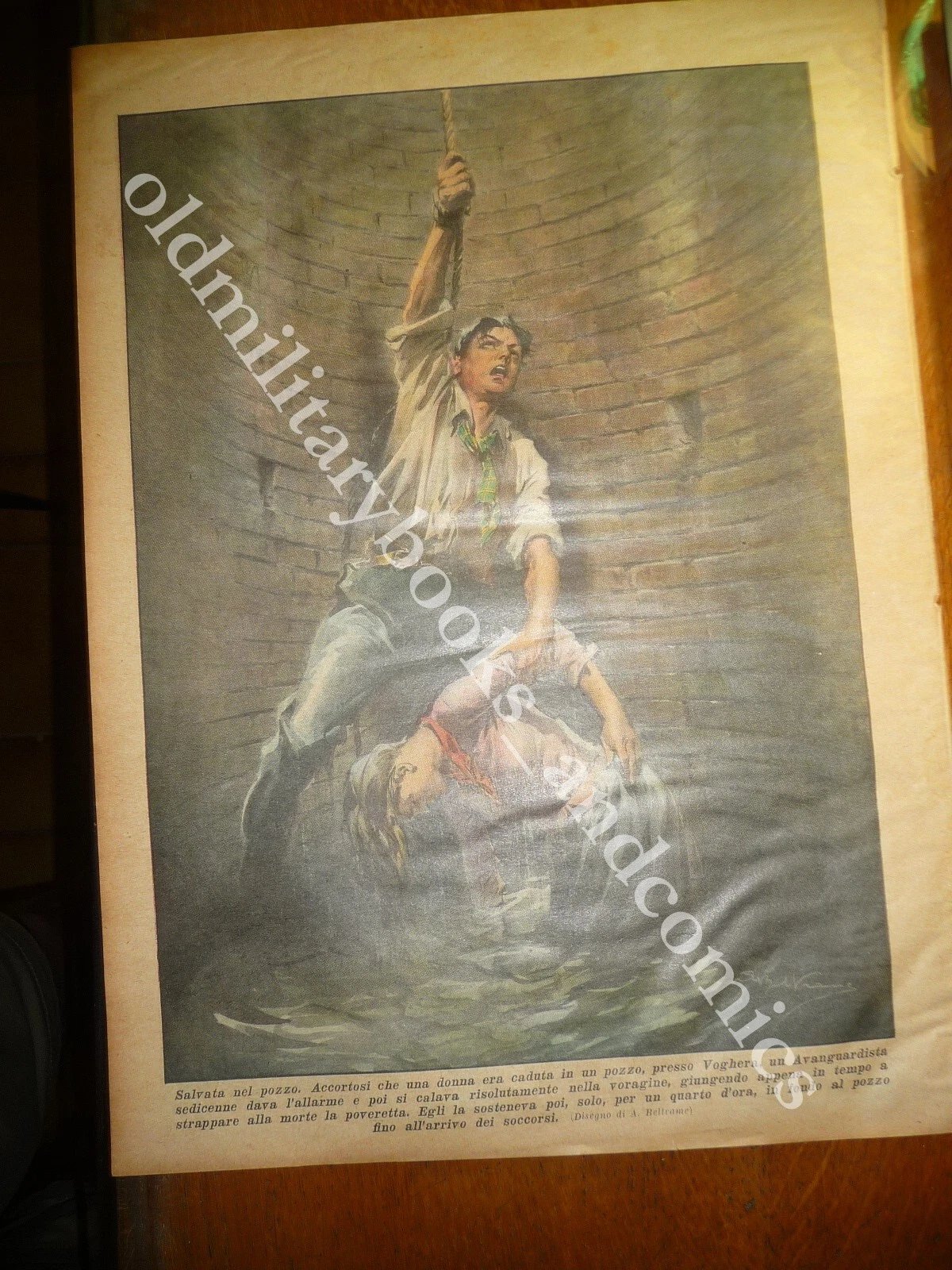 RETRO: Accortosi che una donna era caduta in un pozzo, presso Voghera, un avanguardista sedicenne dava l'allarme e poi si calava risolutamente nella voragine giungendo appena in tempo a strappare alla porte la poveretta.