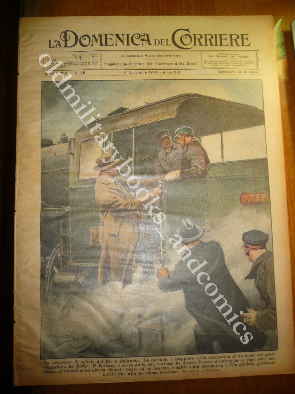 COPERTINA: La presenza di spirito del Re di Bulgaria. Un incendio è scoppiato nella locomotiva di un treno sul quale viaggiava Re Boris. Il Sovrano è sceso dalla sua vettura, ha diretto l'opera d'estinzione e dopo aver medicato il macchinista ferito è salito sulla locomotiva e l'ha guidata personalmente.