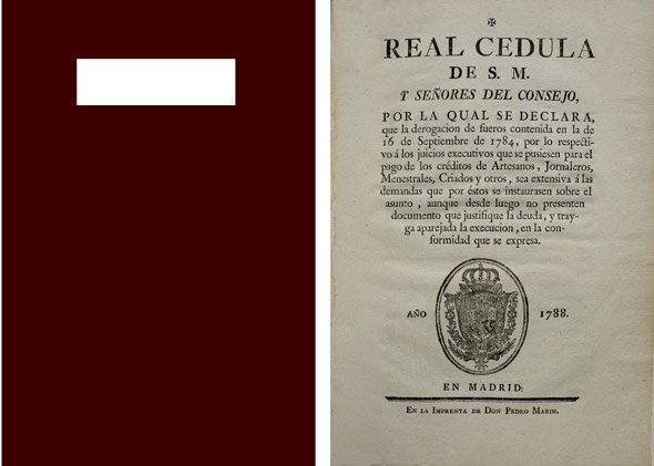 Real Declaración de S.M. y Señores del Consejo por la qual se declara que la derogación de fueros contenida en la de 16 de Septiembre de 1784 por lo respectivo a los juicios executivos que se pusiesen para el pago de los créditos de Artesanos, Jornaleros, Menestrales, Criados y otros, sea extensiva a las demandas que por éstos se instaurasen sobre el asunto, aunque desde luego no presenten documento que justifique la deuda y trayga aparejada la execución.