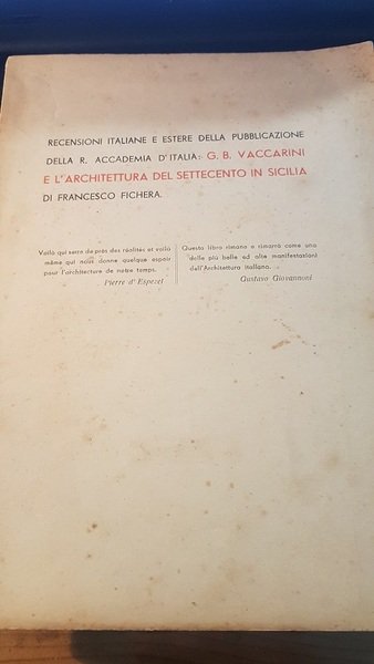RECENSIONI ITALIANE E ESTERE DELLA PUBBLICAZIONE DELLA REALE ACCADEMIA VACCARINI E L'ARCHITETTURA DEL SETTECENTO IN SICILIA DI FICHERA FRANCESCO