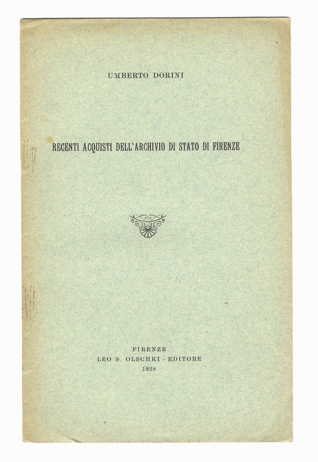 Firenze, Leo S. Olschki Editore, 1928, in-8, br. edit., pp. 7, [1].