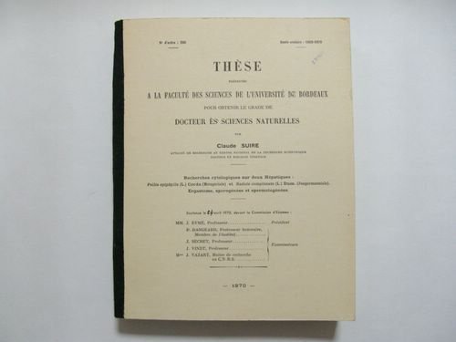 Recherches cytologiques sur deux hépatiques : PELLIA EPIPHYLLA (L) Corda (Metzgeriale) et RADULA COMPLANATA (L.) Dum (Jungermanniale). Ergastome, sporogénèse et spermatogenèse. [ Thèse présentée à la faculté des sciences de l'Université de Bordeaux pour obtenir le grade de Docteur ès Sciences ]