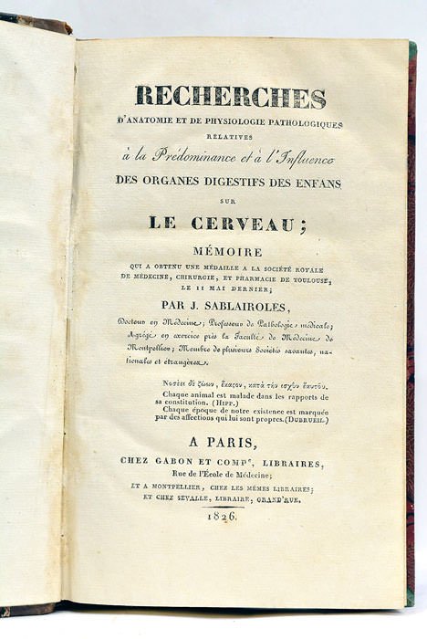 Recherches d’Anatomie et de Physiologie Pathologique relatives à la prédominance et à l’influence des organes digestifs des enfans sur le Cerveau.