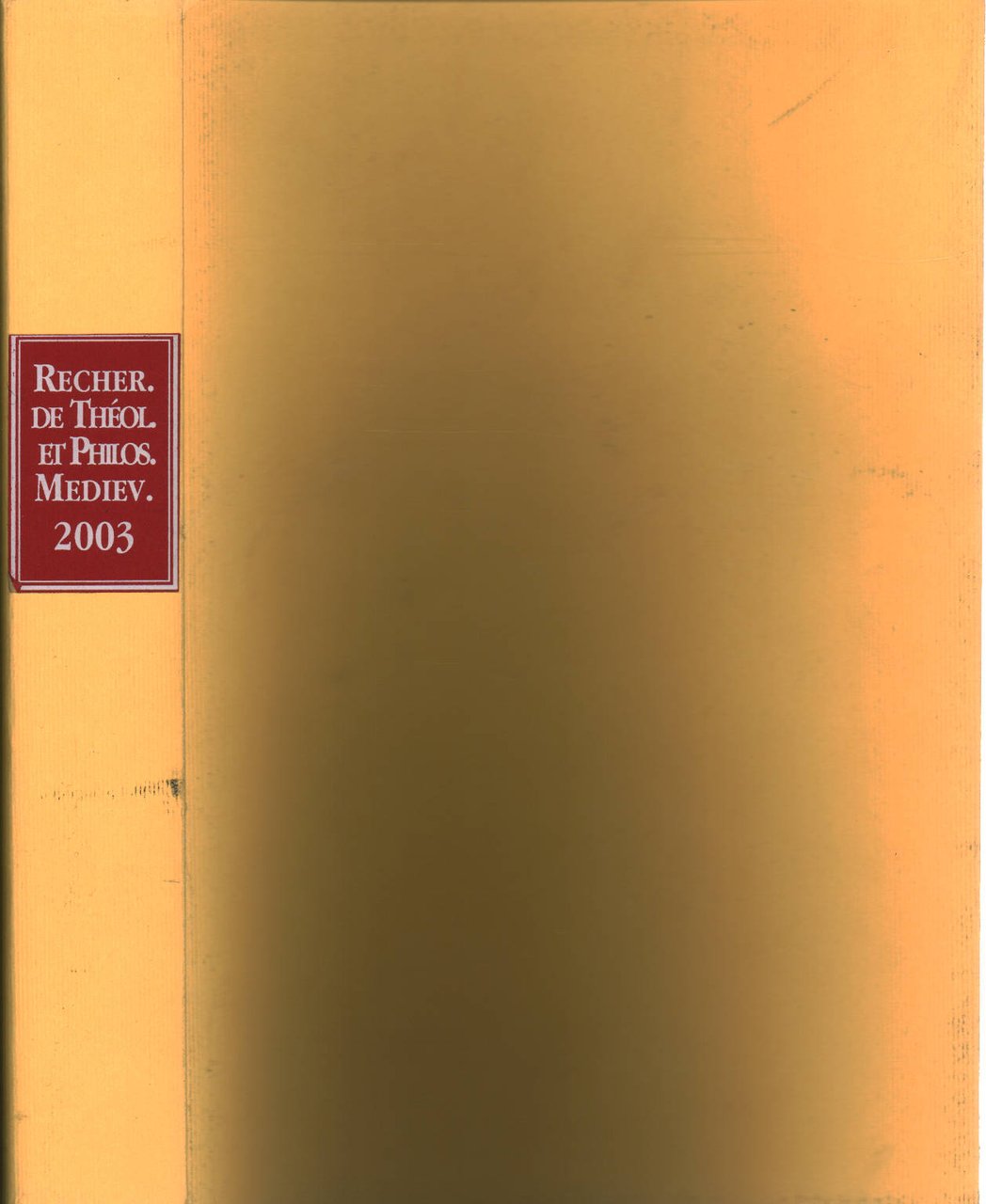 Recherches de Thèologie et philosophie Mèedièvales Tome LXX,1-2003; LXX, 2-2003