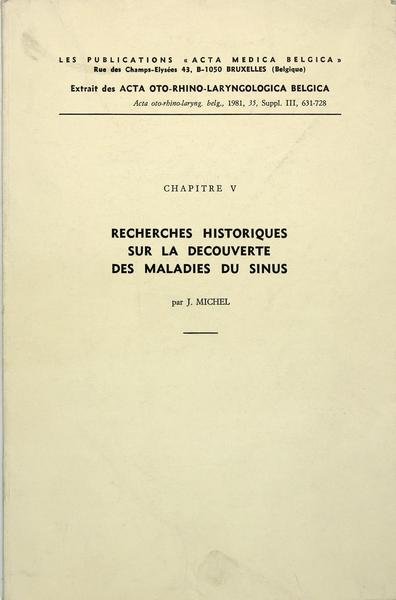 Bruxelles, Les publications Acta Medica Belgica, 1981. Plaquette petit in/4 brochée, 74 p. Une intéressantes histoire sur cette spécialité médicale, mais également sur les méthodes de travail de plus en plus efficaces des hommes de l’art depuis le 18è siècle.