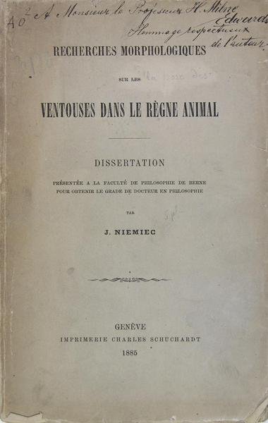 Genève, imprimerie Charles Schuchardt, 1885. In/8 broché, couverture imprimée, 147 pages, 5 planches dépliantes in-fine. Brochage légèrement défraîchi. avec un petit manque. Dissertation présentée à la faculté de Philosophie (!) de Berne pour obtenir le grade de docteur en philosophie.