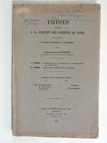 Recherches sur la Biologie et la Systématique des Desmidiées. Thèses présentées à la Faculté des Sciences de Paris. [ Livre dédicacé par l'auteur ]
