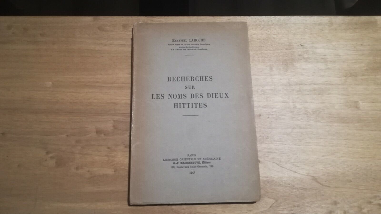 Laroche - Recherches sur le noms des dieux hittites Paris, Librairie orientale et americaine 1947 Libro in ottime condizioni, minimi segni del tempo: piccola mancanza dorso alto, riparazione copertina. Non esitate a contattarci per altre foto o richieste. Saremo lieti di soddisfare ogni vostra esigenza.