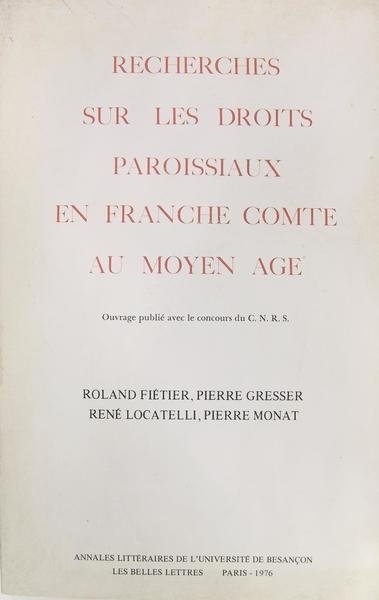 Recherches sur les droits, paroissiaux, en Franche Comté, au moyen age.