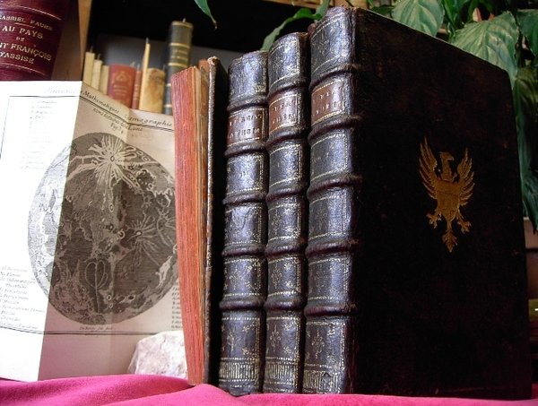 Opera in quattro volumi in 8 (cm. 20 x 13), legatura coeva in pelle, stemma alle armi della famiglia De Rochas DAiglun, decorato in oro ai piatti, titolo al tassello al dorso con nervi a vista e fregi dorati, tagli colorati in rosso, sguardie marmorate, ex - libris della stessa casata, bianca, frontespizi, prefazioni, (18) 460 (20) pp. al primo volume, (10) 462 (14) pp. al secondo, (6) 482 (16) pp. al terzo, (10) 446 (8) pp. al quarto tomo; 133 tavole da incisione su rame, numerate e distribuite nei quattro tomi (la maggior parte di Berey ed alcune di Chevalier) di cui 9 ripiegate; testatine, capilettera e finalini ornati in xilografia, segnalibri in seta. Magnifica edizione dellopera princeps di Ozanam (la prima del 1694 in soli due volumi), una summa delle conoscenze matematiche dell'epoca. I vari trattati sono sviluppati con grande accuratezza e somma cura, e sono completati da innumerevoli figure e illustrazioni tecniche. Il primo volume tratta di aritmetica, geometria, musica, e ottica, il secondo di gnomonica, cosmografia e meccanica, il terzo di pirotecnia e fisica nella prima parte, mentre la seconda, che ha proprio occhiello e prefazione, dedicata allo studio di vari tipi di orologi, con teorie basate sugli studi dell'orologio elementare' di Domenico Martinelli. Il quarto volume aggiunge al titolo principale 'Traite des Phosphores Naturels & Artificiels, & des Lampes Perpetuelles. Dissertation Physique & Chimique, avec l'explication des Tours de Gibeciere, de Gobelets, & autres recreatifs & divertissans', e tratta appunto di fisica, chimica, lampade e teorie empiriche varie. Importante documento dei progressi matematici del XVII e XVIII secolo che, con esperimenti anche divertenti, si occupa tra l'altro di trucchi, fuochi d'artificio, acustica, camera oscura, calendari, magnetismo, giochi con specchi e numeri, lanterna magica, oltre ad ogni tipo di studio sugli orologi, il tutto corredato da un ricchissimo ed esaustivo apparato iconografico. La ricchezza e completezza dei trattati (amplissimi e particolareggiati) e lesposizione piana e precisa ne fanno un caposaldo nel genere trattato. Raro, ed ancor pi raro da reperirsi nello stato in cui qui presentato, col valore aggiunto dellappartenenza alla biblioteca personale di Albert De Rochas DAiglun, erudito scienziato del IX secolo, colonnello, amministratore della Scuola politecnica, dotto grecista, traduttore di antichi testi di scienze militari e arti meccaniche che consacr poi la sua attivit alle ricerche psichiche, con esperienze ed esposizioni teoriche. Opera in eccellenti condizioni di conservazione, con fresca impressione e buoni margini, legatura robusta, carta ancor chiara e greve.