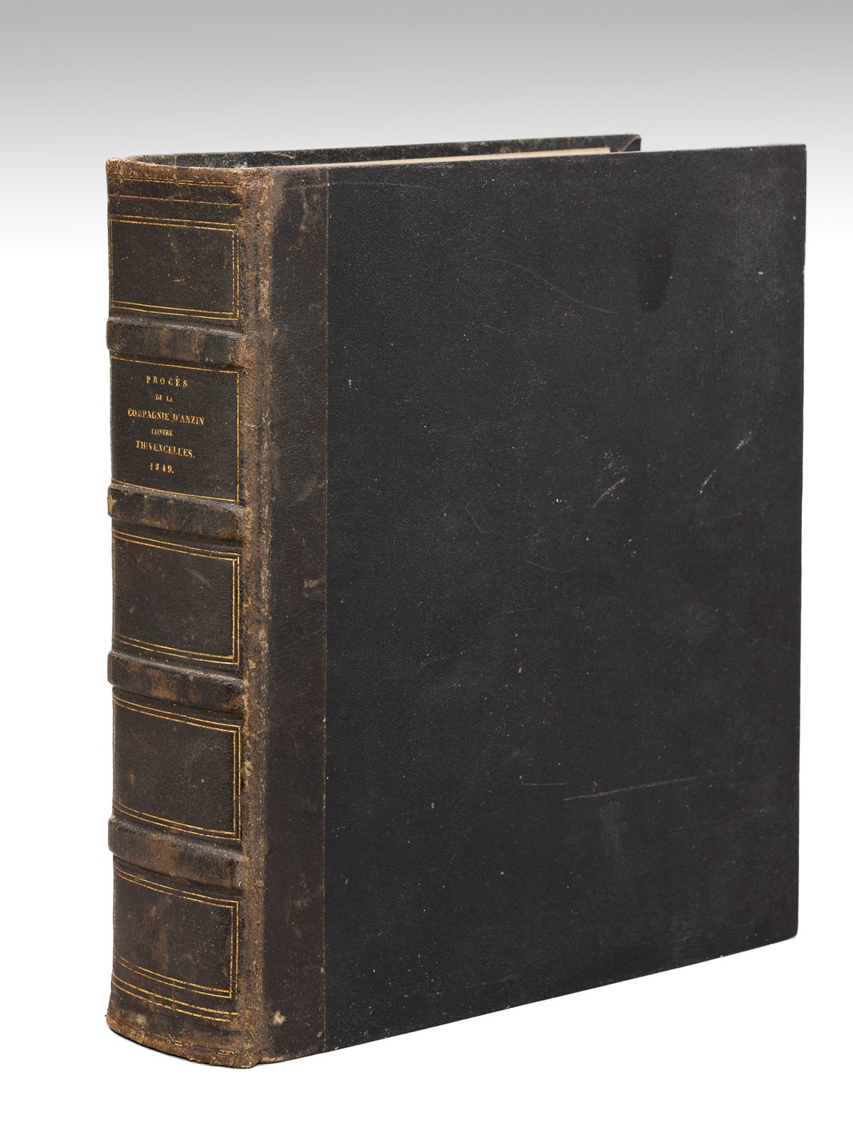 1 vol. fort in-4 reliure de l'époque demi-chagrin noir, circa 1843-1849 : 1 f. (titre général), [ Recueil de 30 ouvrages et brochures relatifs au procès de la Compagnie des Mines d'Anzin contre Thivencelles - Collection des Mémoires, Avis du Conseil d'Etat, Jugemens & Arrêts relatifs à la Concession de Vieux-Condé. 1e Procès Lassalle Année 1806 2e Procès contre les Société réunies d'Escaupont, Thivencelles et Saint-Aybert, Années 1843 à 1849 ] Mémoire pour MM. Desandrouin, Taffin et leurs associés, Formant la Compagnie des Mines d'Anzin, contre MM. Lassalle et Compagnie, Réimpression, s.l.n.d., 66 pp. [ Suivi de : ] Lettre des Représentans de la Compagnie Propriétaire des Mines d'Anzin à M. le Ministre des Travaux Publics, tendant à fire ordonner la cessation des travaux entrepris par la Compagnie de Thivencelles, sur une partie de la concession dite de Vieux-Condé, Imprimerie de Madame de Lacombe, s.d., 14 pp. et 1 f. n. ch. [ Suivi de : ] Requête tenand à ce qu'il soit procédé au bornage de la Concession de Condé, Vieux-Condé et Hergnies, Imprimerie de Madame de Lacombe, s.d., 30 pp. et 1 f. n. ch. [ Suivi de : ] Défense pour les trois Sociétés réunies de Thivencelles, Fresnes-Midi et Condéenne contre la Cie D'Anzin, Imprimerie de A. Prignet, Valenciennes, s.d., 104 pp. [ Suivi de : ] Mémoire pour la Compagnie propriétaire des Mines d'Anzin, Fresnes, Vieux-Condé, etc., contre les Trois Sociétés réunies d'Escaupont, Thivencelles et Saint-Aybert, Imprimerie de Paul Dupont et Comp., Paris, s.d. 54 pp. [ Suivi de : ] Observations pour la Compagnie d'Anzin, contre les Compagnies réunies de Thivencelles, Escaupont et Saint-Aybert, Imprimerie de Paul Dupont et comp., s.d., 8 pp. [ Suivi de : ] Copie d'un Manuscrit appartenant aux Archives de la Maison de Croÿ (composé vers 1650), Imp. de Marc-Aurel, Paris, s.d., 8 pp. [ Suivi de : ] Analyse des faits principaux servant de base aux moyens développés dans le Mémoire de M. Vivien (du 23 décembre 1843), pour la Compagnie d'Anzin, en réfutation de celui de M. Daverne, avocat de la Compagnie d'Escaupont, Thivencelles et St-Aybert, Imprimerie de A. Prignet, Valenciennes, s.d., 12 pp. [ Suivi de : ] Réponse des Sociétés réunies de Thivencelles, Fresnes-Midi et Condéenne au Mémoire de la Compagnie d'Anzin du 23 décembre 1843, Imprimerie de Boucher-Moreau, Anzin, 45 pp. et 1 f. blanc [ Suivi de : ] Note supplémentaire pour la Compagnie d'Anzin sur l'autorité de la Chose jugée résultant de l'avis du Conseil d'Etat, approuvé par l'Empereur le 31 mars 1806, Imprimerie de A. Prignet, Valenciennes, s.d., 23 pp. [ Suivi de : ] Extrait du Conseil général des Mines Séances des 25, 26 et 30 octobre 1844, Imprimerie de Boucher-Moreau, Anzin, 4 pp. [ Suivi de : ] Dernières Productions de la Compagnie d'Anzin, relatives à la Concession de Vieux-Condé, et Observations sur l'avis du Conseil-Général des Mines, du 30 octobre 1844, Imprimerie de Boucher-Moreau, Anzin, et Imprimerie de Marc-Aurel, s.d., 31-31 pp. [ Suivi de : ] A Monsieur le Ministre Secrétaire d'Etat des Travaux Publics, Paris, le 7 mai 1845, 12 pp. [ Suivi de : ] Les Associés régisseurs de la Compagnie des Mines d'Anzin à Son Excellence Monsieur le Ministre des Travaux Publics, Imprimerie de Marc-Aurel, s.d., 7 pp. [ Suivi de : ] Requête Sommaire pour la Compagnie Propriétaire des Mines d'Anzin, poursuites et diligences de M. Lebret, l'un des associés, s.l.n.d., 36 pp. [ Suivi de : ] Défense pour les Sociétés réunies de Thivencelles, Fresnes-Midi et Condéenne-Saint-Aybert, poursuite et diligence de M. Julien Lenglé, l'un des associés, Imprimerie de Boucher-Moreau, s.d., 15 pp. [ Suivi de : ] Réplique pour la Compagnie Proprétaire des Mines d'Anzin, Me. Chambaud et P. Fabre Avocats aux Conseils, Imprimerie Typographique et Lithographique de A. Prignet, Valenciennes, 1849, 100 pp. et 1 f. n. ch., 1 f. blanc [ Suivi de : ] Réplique pour les Sociétés réunies de Thivencelles, Fresnes-Midi et Condéenne-Saint-Aybert, contre la Compagnie d'Anzin, Imprimerie de Boucher-Moreau, s.d., 27 pp. [ Suivi de : ] Réponse de la Compagnie d'Anzin, Imprimerie de Marc-Aurel, s.d., 55 pp. Imprimerie de Boucher-Moreau, s.d., 15 pp. [ Suivi de : ] Consultation de Me Duvergier pour les Cies réunies de Thivencelles, Fresnes-Midi et Condéenne, et Réfutation de la Consultation de Me Billault en faveur de la Compagnie d'Anzin, Imprimerie de Boucher-Moreau, s.d., 42 pp. [ Suivi de : ] Consultation de Me Duvergier en date du 28 avril 1847 pour les Compagnies réunies de Thivencelles, Escaupont et Saint-Aybert avec annotations pour la Compagnie d'Anzin, Imprimerie de Marc-Aurel, s.d., 40 pp. [ Suivi de : ] Consultation de Me Duvergier en date du 28 avril 1847 pour les Compagnies réunies de Thivencelles, Escaupont et Saint-Aybert et réfutation de la Consultation de Me Billault en faveur de la Compagnie d'Anzin, Imprimerie de Marc-Aurel, s.d., 93 pp. [ Suivi de : ] etc. etc. La Compagnie des mines d'Anzin est l'une des plus anciennes compagnies minières françaises, créée en 1757. Elle a lancé l'exploitation du charbon dans le Nord de la France et fut l'une des premières grandes sociétés industrielles françaises. Dirigée par les grands noms du capitalisme et de la politique française du XIXe siècle (Casimir-Perier ou Adolphe Thiers), elle est décrite dans le roman Germinal d'Émile Zola, et est devenue un symbole social et politique du capitalisme français du XIXe siècle. L'arrêt final concluant cet impressionnant recueil est très remarquable, en ce qu'il se fonde sur les droits de haute justice accordés dans la première du XVIe siècle aux Seigneurs de Croy par Charles Quint ! Bon état (dos lég. frotté, un mors frottéen queue, bon exemplaire par ailleurs).