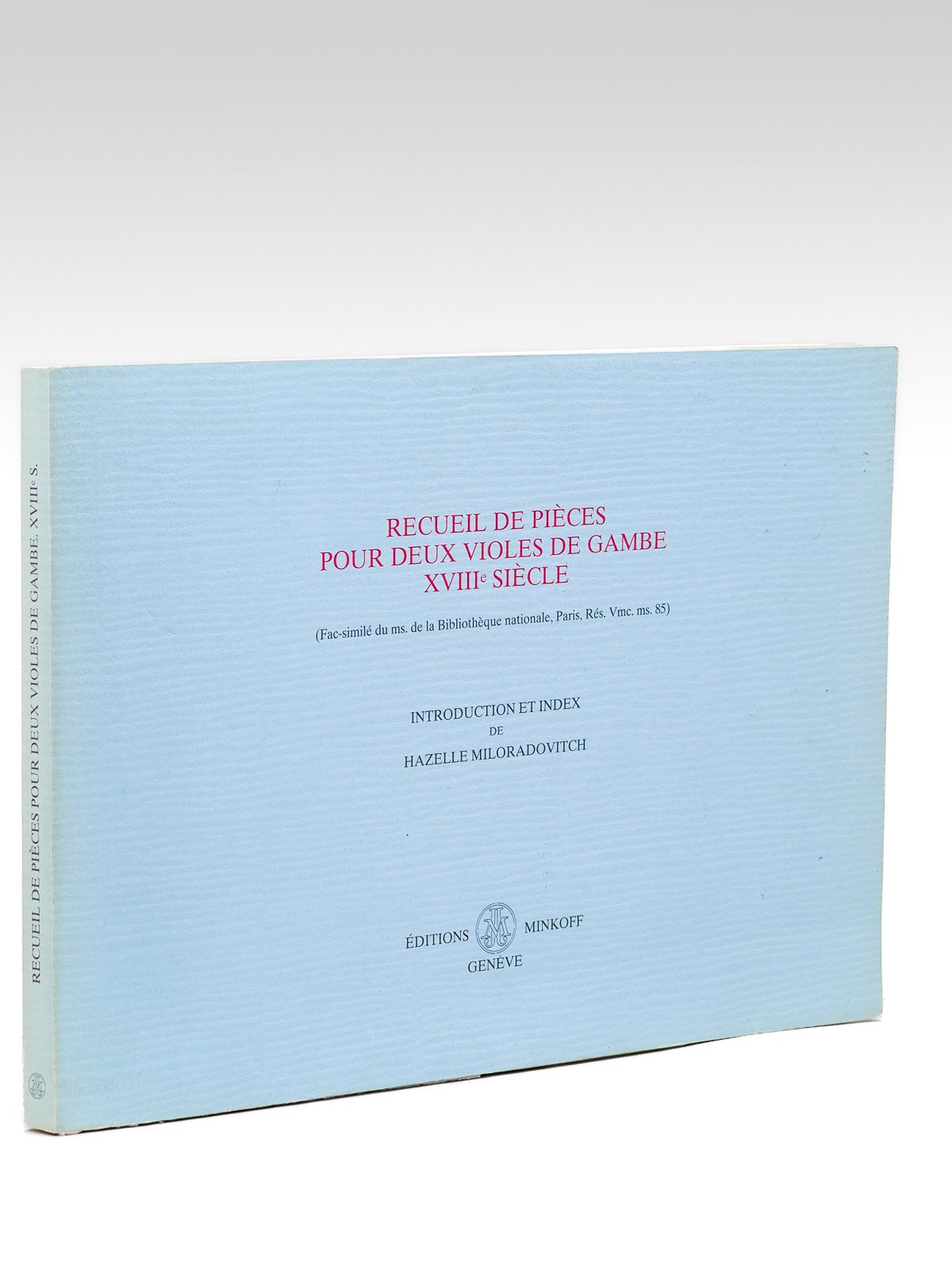 Recueil de pièces pour deux violes de gambe XVIIIe siècle (Fac-similé du ms. de la Bibliothèque nationale, Paris, Rés. Vmc. ms. 85). Introduction et index de Hazelle Miloradovitch.