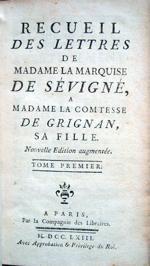 Otto volumi in-24° (cm 14,1 x 8), pp. XLVIII, 358, (2); (4), 378, (2); 406, (2); 407, (1); 417, (3); 384, (2); 384; 429, (3), bella legatura coeva in piena pelle marmorizzata, con titoli e fregi in oro al dorso e cornice a secco ai piatti. Tagli e fogli di guardia marmorizzati. Normali segni d'uso e del tempo alla legatura, con alcune leggere abrasioni e qualche piccola menda alle cerniere. Firma d'appartenenza nel bordo superiore dell'occhietto di ciascun volume. Qualche leggero segno d'umido. Di seguito, la descrizione dettagliata dei vari tomi: Tomo I. Nulla di rilevante da segnalare; Tomo II. Piccola macchia nel bordo esterno del foglio che ospita l'occhietio; altra piccola macchia nel margine inferiore delle pagine dalla 355 alla 368; al foglio che ospita le pagine 113-114, mancanza dell'angolo inferiore esterno, lontano dal testo, reintegrata; al foglio con le pagine 245-246, piccolo foro nel testo, con perdita di otto lettere ben reintegrate da intervento di restauro; Tomo III. Piccolo alone color marrone chiaro nell'angolo inferiore esterno delle pagine 240-240, alone che nelle pagine 243-250 assume le caratteristiche di una macchilina limitata al bordo, lontano dal testo; Tomo IV. Piccolo foro di tarlo nel margine interno delle pagine fino alla 40; il fascicolo Q risulta anteposto al fascicolo P; al foglio con le pagine 311-312, piccola mancanza, che non riguarda il testo, nel bordo inferiore, ben reintegrata; al foglio che ospita le pagine 347-348, all'altezza dell'angolo superiore esterno, piccolissimo foro, ben riparato; Tomo V. Minuscoli puntini bianchi al piatto anteriore; Tomo VI. Cinque piccole, leggere macchie, color marrone, a pagina 8; Tomo VII. Leggero alone d'umido, più visibile alle prime e alle ultime pagine. Tomo VIII. Minuscoli puntini bianchi al piatto anteriore e una mancanza nella parte inferiore della cerniera posteriore. Normale patina del tempo alle pagine dei volumi, per il resto esemplare ben conservato. Nota di spedizione: il peso complessivo dei volumi, debitamente imballati per l'invio, supera i 2 chilogrammi. Marie de Rabutin-Chantal, detta Marchesa di Sévigné (1626-1696), scrittrice francese, nacque a Parigi da antica famiglia borgognona. Rimasta orfana in tenera età, fu lo zio, Christophe de Coulanges, suo tutore, a procurarle una buona educazione. Nel 1644 sposò Henri, marchese de Sévigné, nobile bretone benestante: dal matrimonio nacquero due figli, Françoise Marguerite, nel 1646, e Charles, nel 1648. Nel 1651, Henri de Sévigné venne ferito a morte durante un duello. Rimasta vedova, Marie non si risposò più. Si stabilì a Parigi, dove prese a frequentare i salotti dell'aristocrazia. La figlia Françoise si sposò nel 1669 con François d'Adhémar, conte di Grignan, cittadina della regione provenzale. Pur preferendo vivere a Parigi, la coppia dovette risiedere a Grignan, poiché il conte era stato nominato governatore di Provenza. Marie, molto legata alla primogenita, intrattenne con lei una fitta corrispondenza. Dal 1673, queste lettere, copiate e diffuse non si sa bene da chi, cominciarono a circolare pubblicamente, riscuotendo l'approvazione di numerosi lettori per la loro piacevolezza, per la varietà degli argomenti trattati, con competenza e padronanza, per le notizie mondane e le battute di spirito in esse contenute. Madame de Sévigné non si oppose a questa circolazione, affermando che quelle missive, in sostanza, erano dei documenti pubblici. Nel 1676 si ammalò seriamente e deise di curarsi a Vichy: le sue lettere da quella cittadina sono tra le sue migliori per la vivacità con cui tratteggia la vita quotidiana del suo tempo. Nel 1696, assistendo la figlia indisposta a Grignan, contrasse una malattia, forse una polmonite, che la condusse a morte.