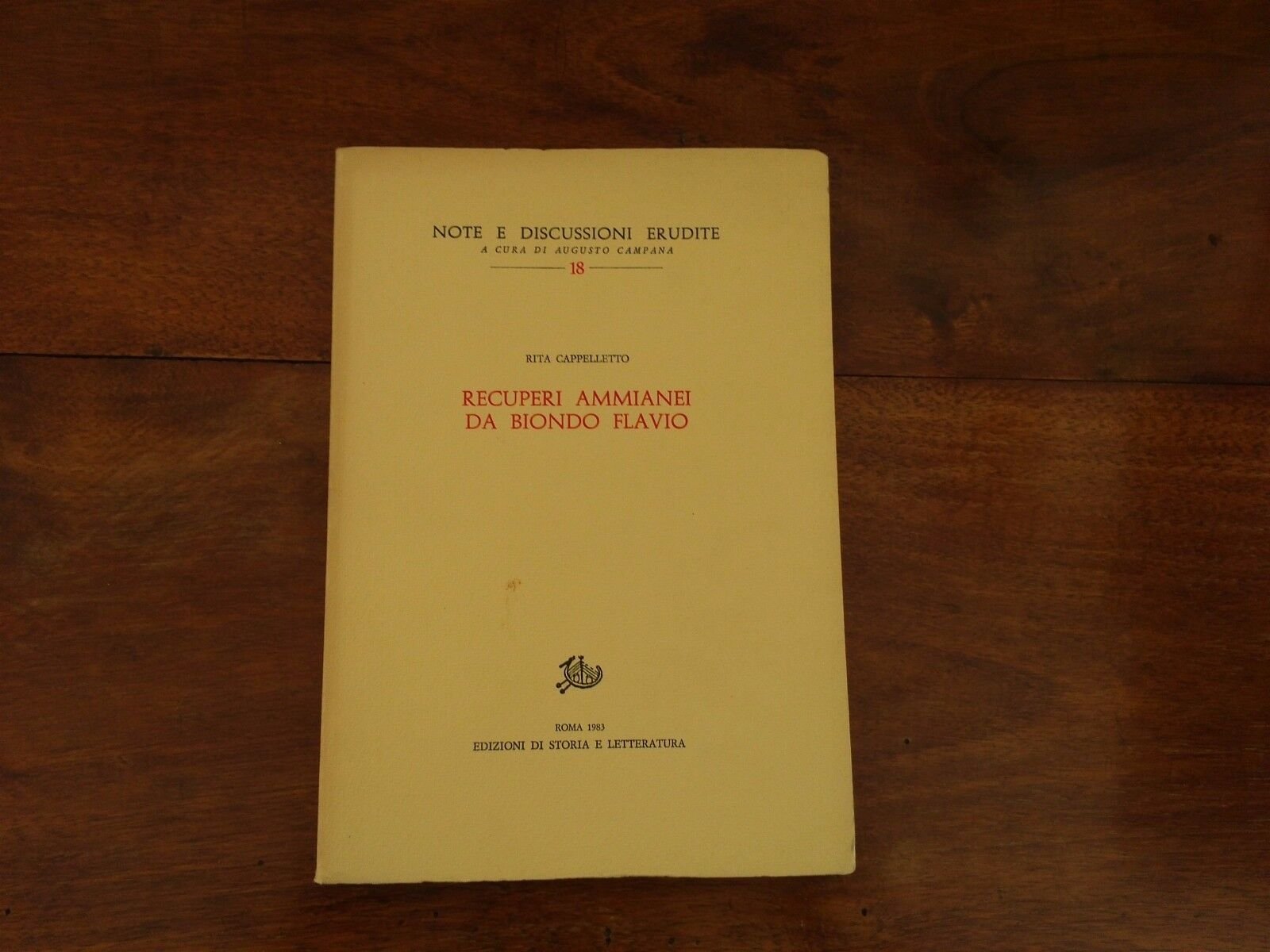 Cappelletto - Recuperi ammianei da Biondo Flavio Edizioni di storia e letteratura Prima edizione 1983 Libro in ottime condizioni, minimi segni del tempo. Non esitate a contattarci per altre foto o richieste. Saremo lieti di soddisfare ogni vostra esigenza.