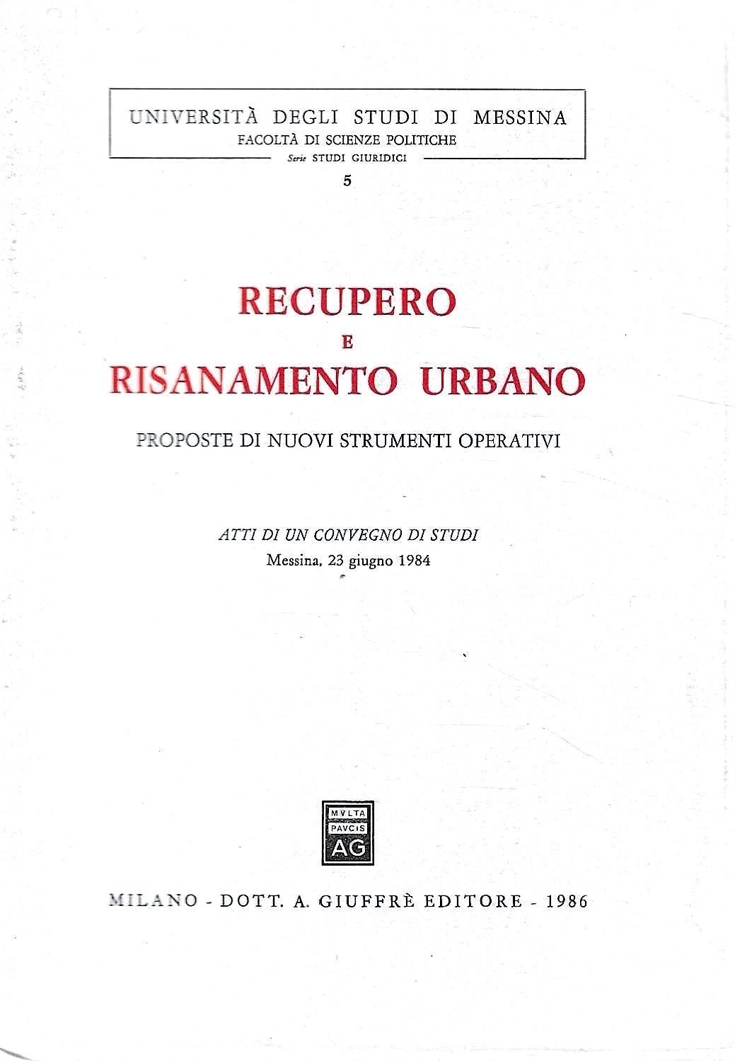 Recupero e risanamento urbano. Proposte di nuovi strumenti operativi. Atti di un convegno di studi - Messina, 23 giugno 1984