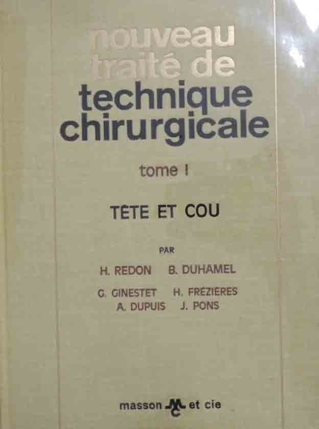 H. Redon et al., Nouveau traité de technique chirurgicale. Tome I. Tete et cou, B. Duhamel, Chirurgie Infantile, G. Ginestet et al., Chirurgie plastique, Masson et Cie, Paris 1972, pp. 508, ill. b.n., cm 26, tela ed. con titoli al dorso e al piatto e sovraccoperta in acetato. Pubblicazione in lingua francese. Autori: H. Redon, M. Dupas, J.-M. Singier, J. J. Fasano, P. Sallé, B. Duhamel, G. Ginestet, H. Frézières, A Dupuis, J. Pons. Elegante ex libris all’inteno del piatto anteriore. Minima abrasione all’ultima pagina di guardia, per il resto perfetto.