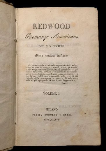 Redwood romanzo americano del sig. Cooper prima versione italiana. Volume (I IV).