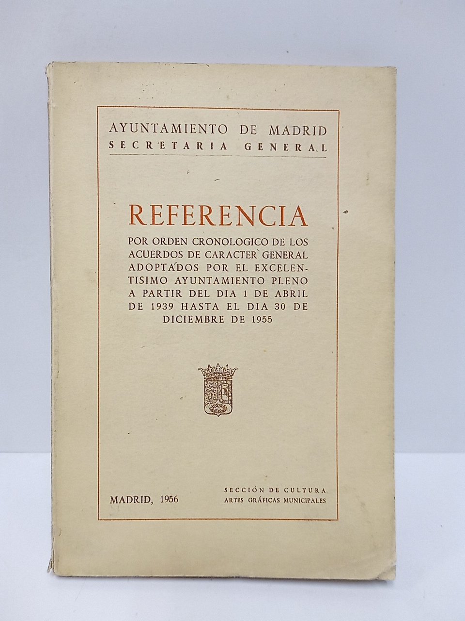 Referencia por orden cronológico de los acuerdos de carácter general adoptados por el Excelentísimo Ayuntamiento pleno a partir del día 1 de abril de 1939 hasta el día 30 de diciembre de 1955