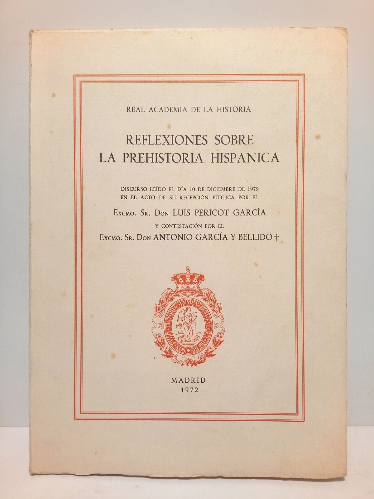 Reflexiones sobre la prehistoria hispánica. (Discurso de ingreso en la Real Academia de la Historia. CONTESTA: Antonio García y Bellido)