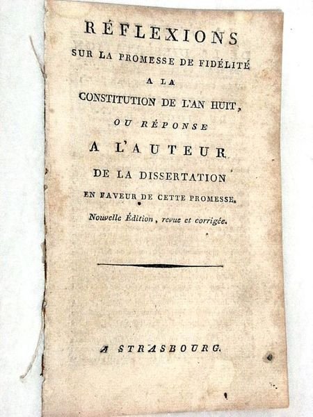 REFLEXIONS sur la Promesse de Fidélité à la Constitution de l'an huit, ou réponse à l'auteur de la dissertation en faveur de cette promesse. Nouvelle édition, revue et corrigée.