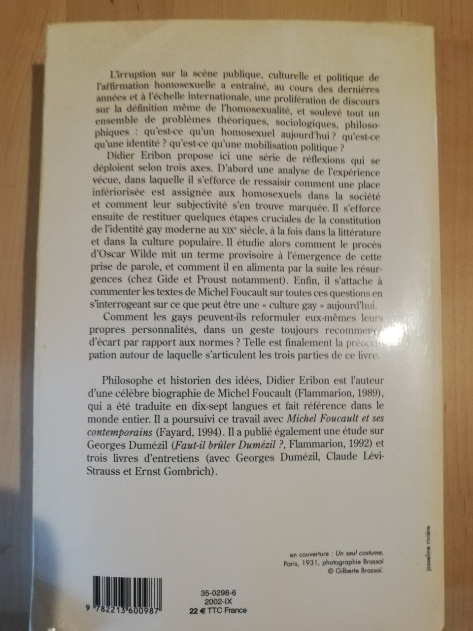 Reflexions sur la question gay, Didier Eribon, 1999, Fayard