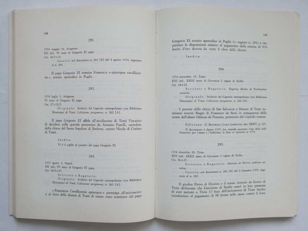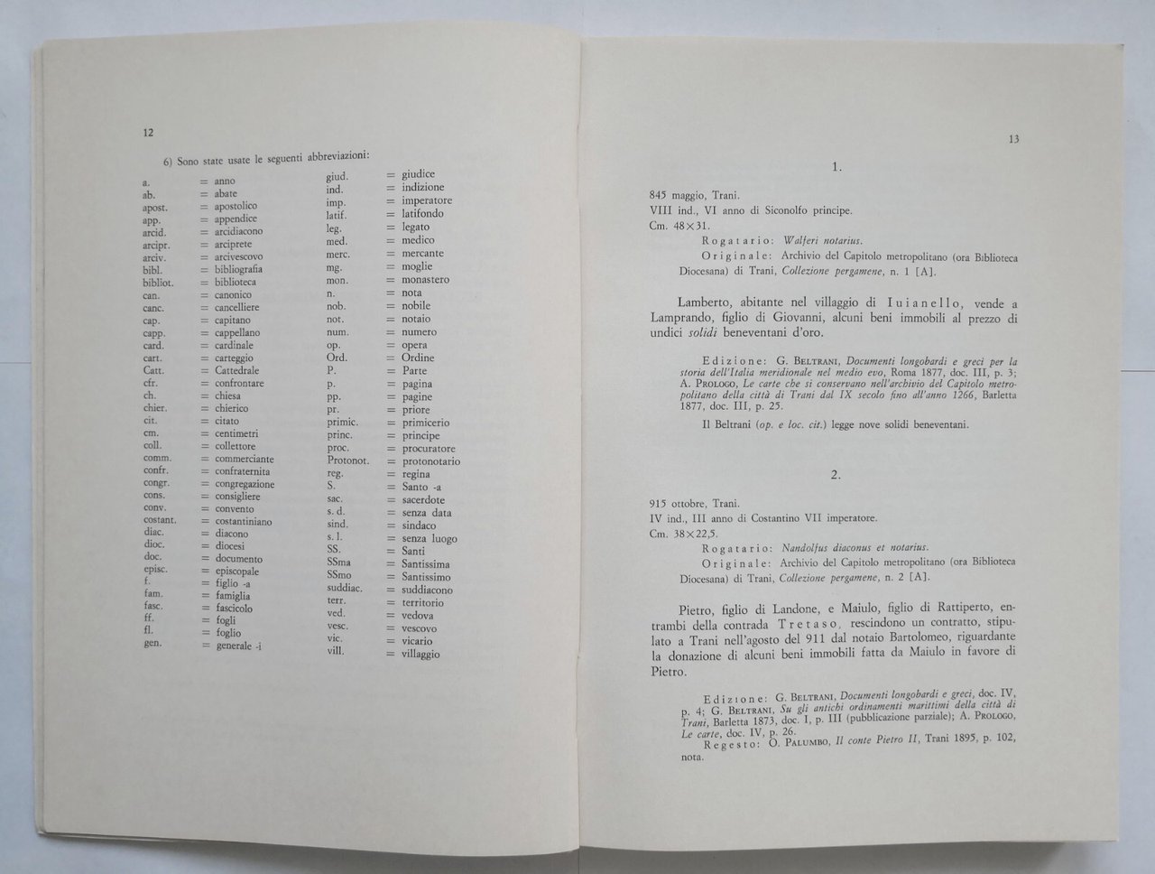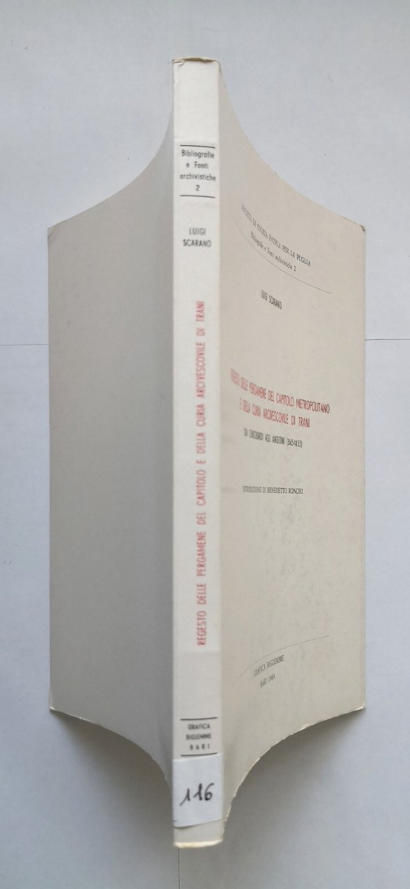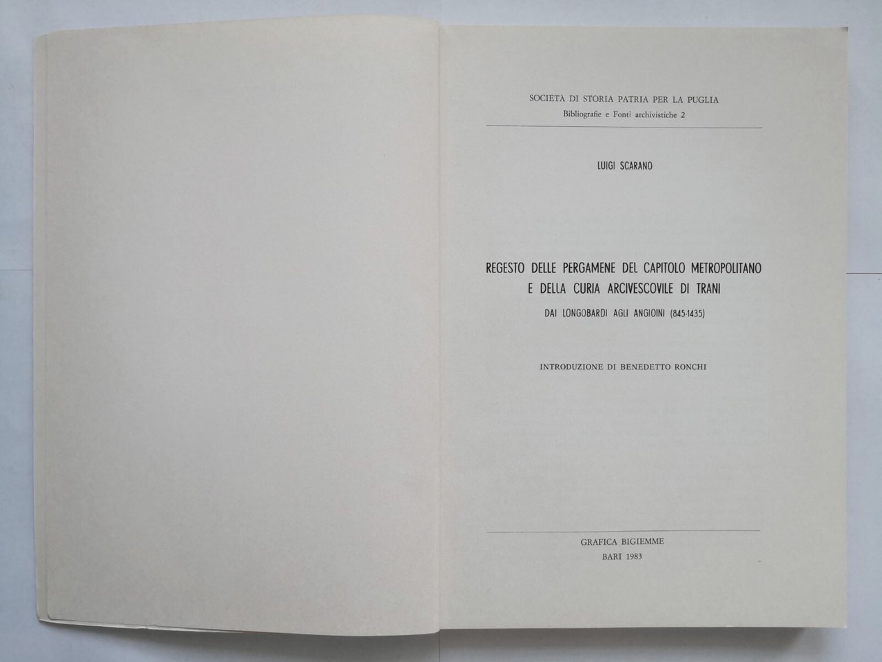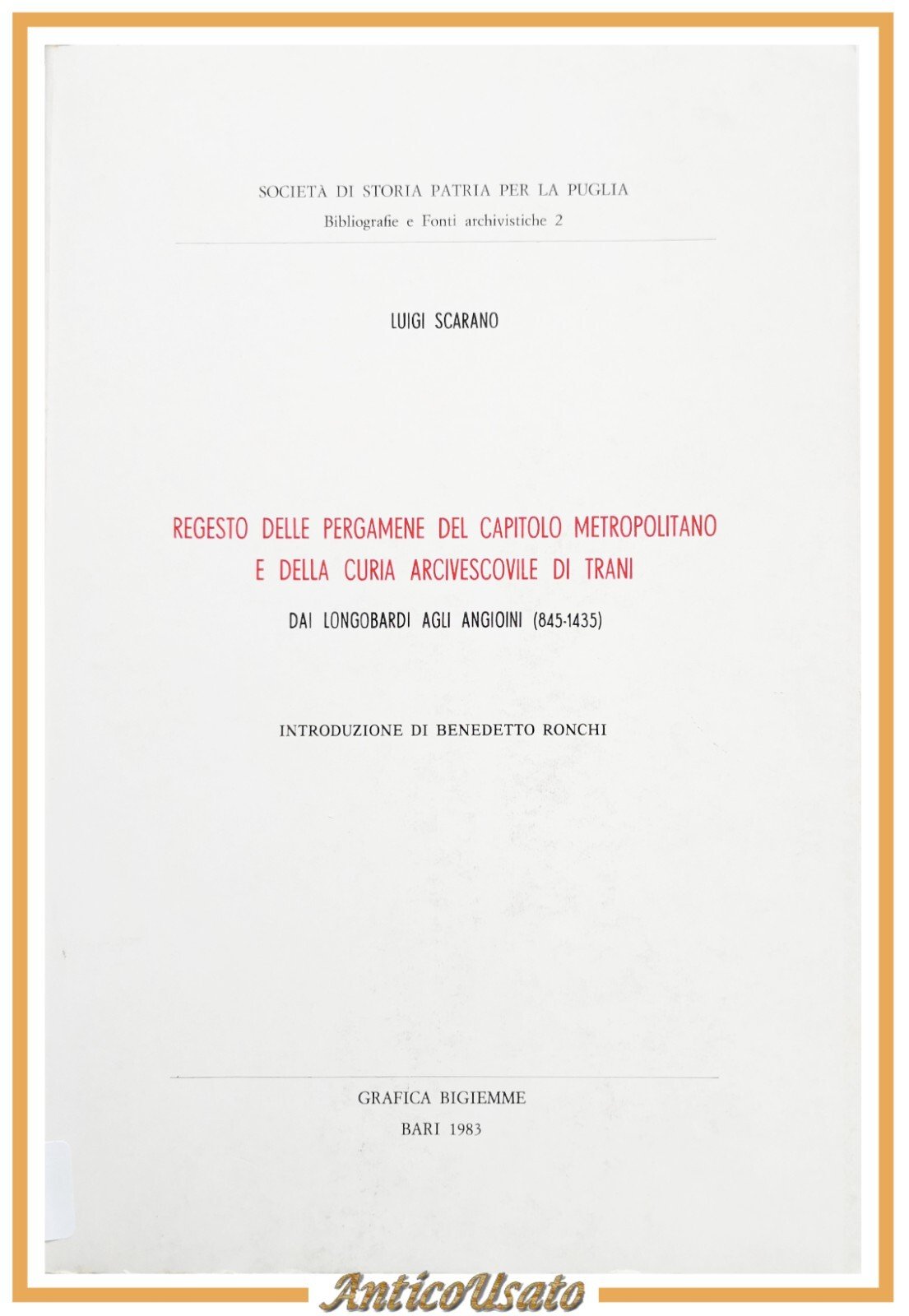 REGESTO DELLE PERGAMENE DEL CAPITOLO METROPOLITANO E DELLA CURA ARCIVESCOVILE DI TRANI di Luigi Scarano. Dai Longobardi agli Angioini (845-1435).