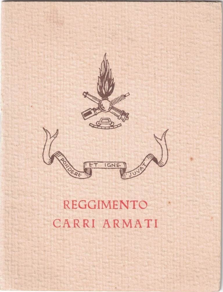 Regg. Carri Armati, 1934 XII E. F., s.n., s.l. (ma stampato a Borgo Sant’Jacopo Sopr’Arno, Firenze, presso l’Officina Grafica dei Giannini) 1933, paginazione varia per un totale di pp. 16, cm 16, rilegatura ed. a punto metallico. Titolo alla prima di copertina: Reggimento Carri Armati. Bell’opuscoletto stampato su carta vergata celebrativo del Reggimento Carri Armati. All’interno: breve storia del Reggimento, elenco dei Colonnelli Comandanti del Reggimento dalla sua costituzione, calendario dell’anno 1933 (due mesi per pagina stampati entro cornice), elenco degli Ufficiali del Reggimento. Minimi segni del tempo, per il resto perfetto. Raro.