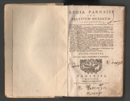 REGIA PARNASSI SEU PALATIUM MUSARUM - IN QUO HABENTUR, EDITIO POSTREMA, CATERARUM OMNIUM EMENDATISSIMA AC LOCUPLETISSIMA.