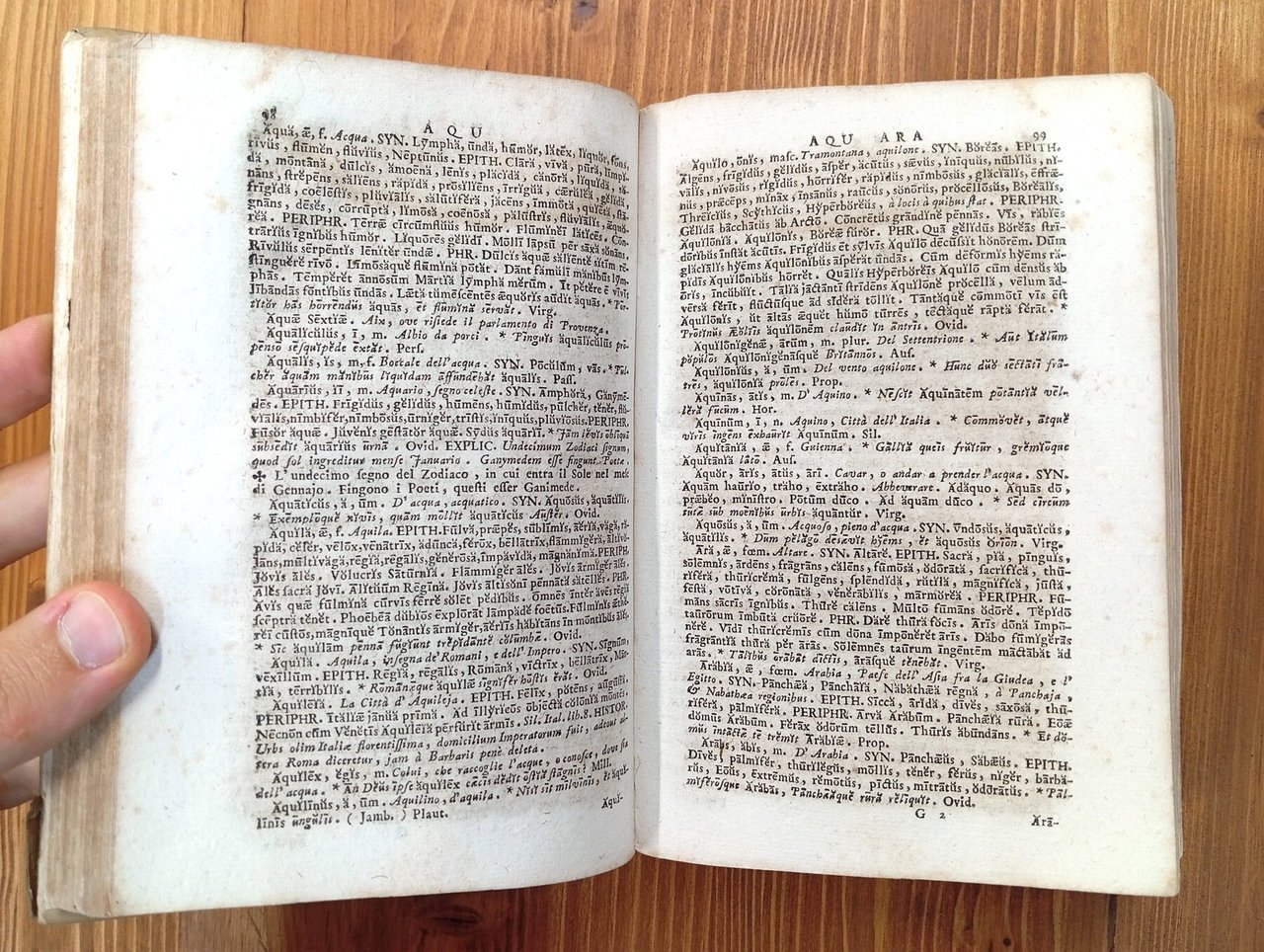 Volume rilegato in coeva pergamena mancante del dorso, bella incisione in antiporta e fregio al frontespizio, 852 pagine di testo in lingua latina precedute da indicazioni al lettore sulle regole della poesia latina, declinazioni e coniugazioni dei verbi ecc. Nota calligrafica di ex libris alla sguardia posteriore. Oltre agli evidenti segni di usura alla copertina, le pagine sono interessate da fioriture e bruniture, più dense in alcune parti; testo in carattere molto fitto, ma comunque leggibile; esemplare più che accettabile di una ricca e interessante settecentina – Questo dizionario poetico anonimo è stato attribuito a padre Jacques Vanière (1664-1739), poeta e latinista gesuita francese. Era noto soprattutto per le sue poesie latine, che gli valsero il soprannome di “Virgilio francese”.