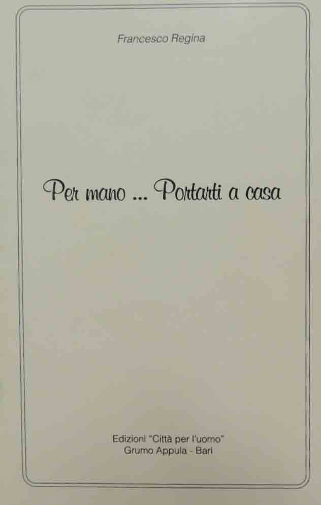 Francesco Regina, Per mano… Portarti a casa, Edizioni Città per l’uomo, Grumo Appula (Bari) 1992, pp. 23, cm 20, br. ed. Dedica manoscritta dell’autore alla seconda carta. Perfetto.