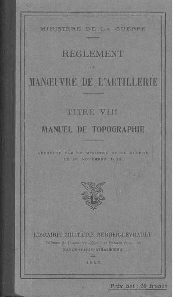 Règlement de manoeuvre de l'artillerie. Titre VIII. Manuel de topographie approuvé par le Ministre de la Guerre le 1° novembre 1922