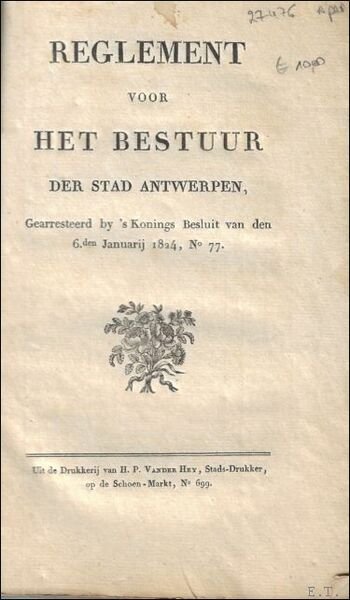 REGLEMENT VOOR HET BESTUUR DER STAD ANTWERPEN.
