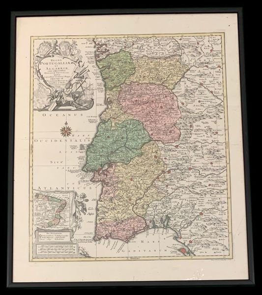 Regna Portugalliae et Algarbiae cum adjacentibus Hispaniae Provinciis quibus in peculiari et minori Mappa adjunctum est Brasiliae Regnum Sumptibus Studio Tob. Conr. Lotter Geogr. Aug.Vinde.