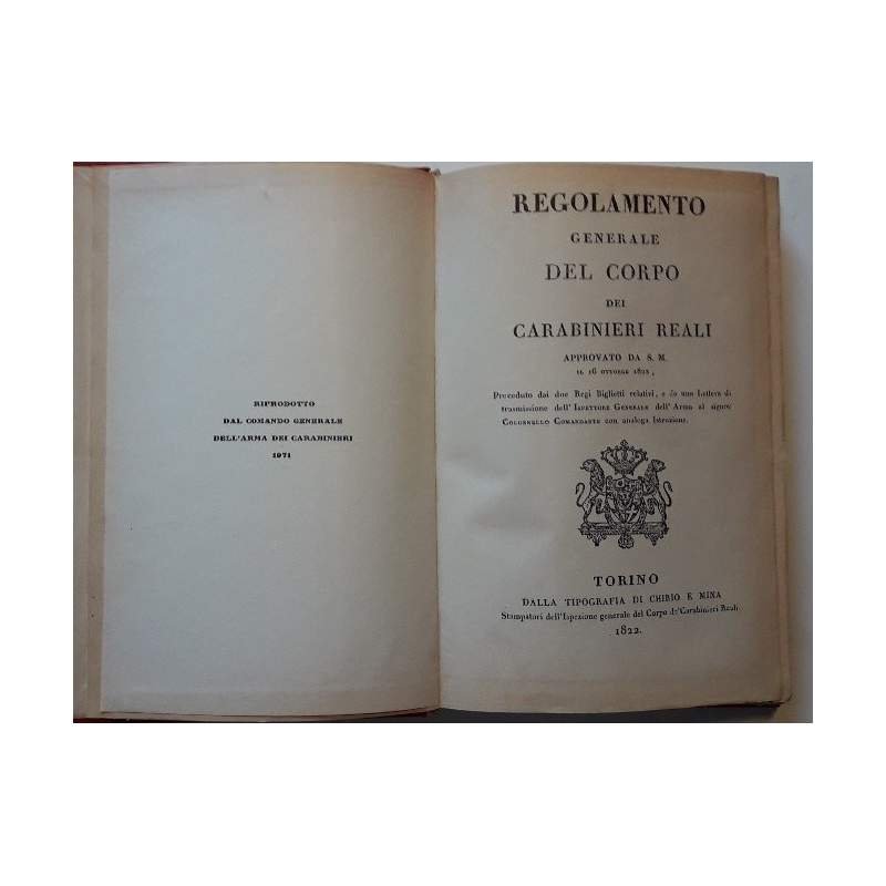 REGOLAMENTO GENERALE DEL CORPO DEI CARABINIERI REALI APPROVATO DA S.M.IL 16 OTTOBRE 1822(1971)