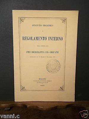 REGOLAMENTO INTERNO DELL'OPERA PIA PEI DERELITTI ED ORFANI MILANO 1880