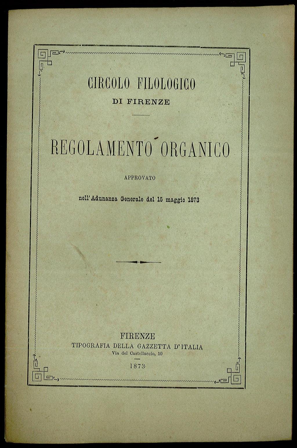 Regolamento organico approvato nell'adunanza generale del 15 maggio 1873