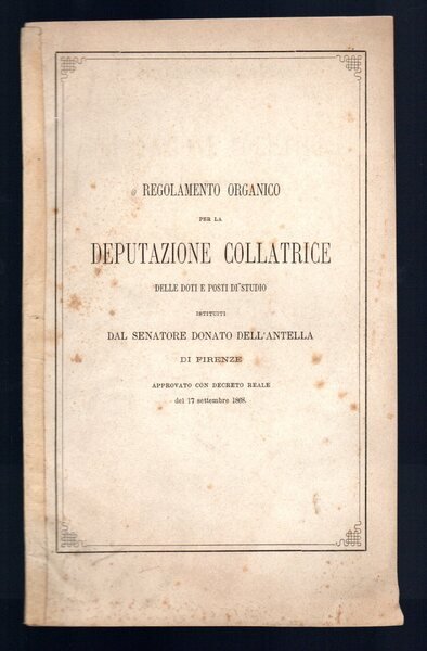 Regolamento organico per la Deputazione Collatrice delle doti e posti di studio