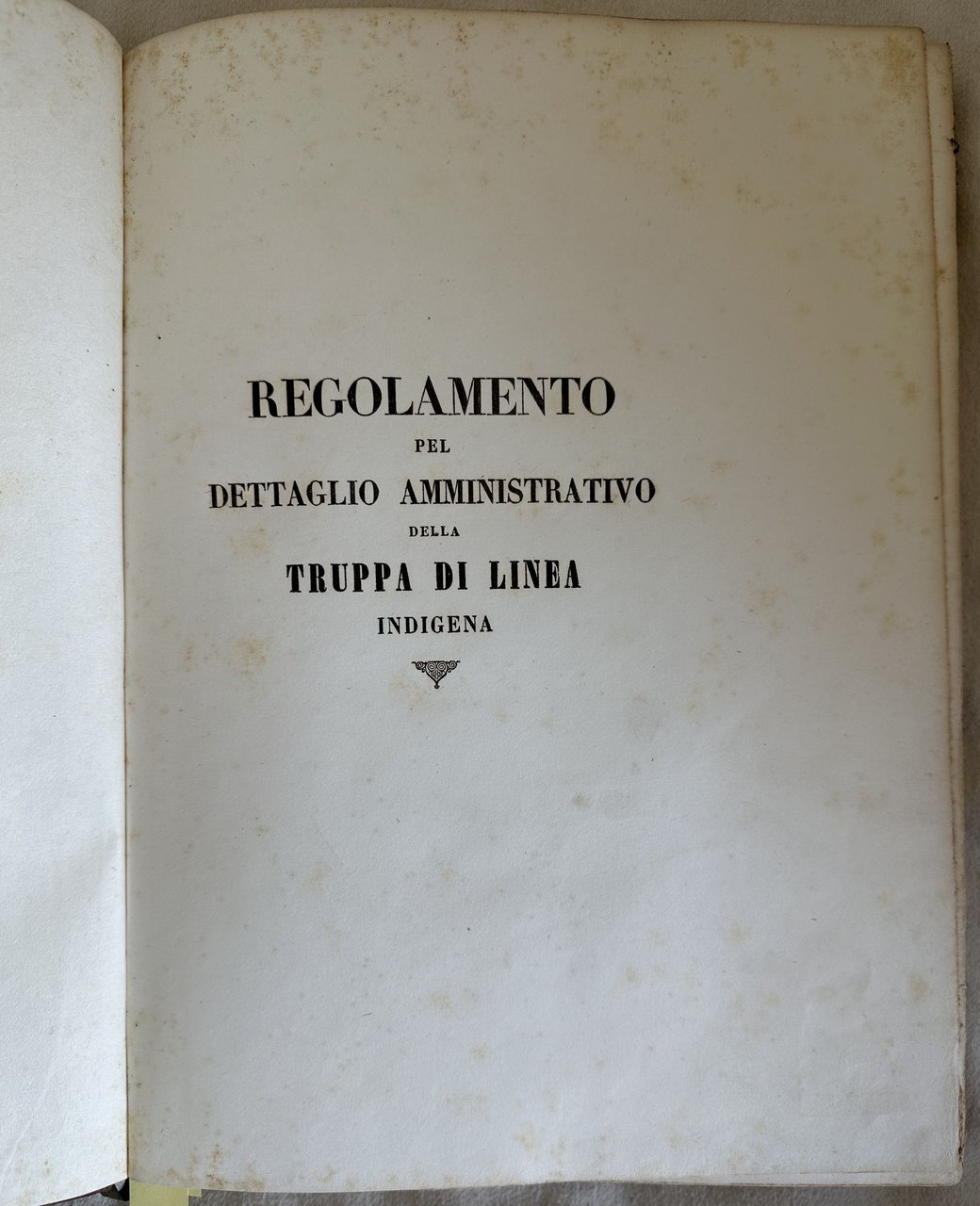 REGOLAMENTO PEL DETTAGLIO AMMINISTRATIVO DELLA TRUPPA DI LINEA INDIGENA