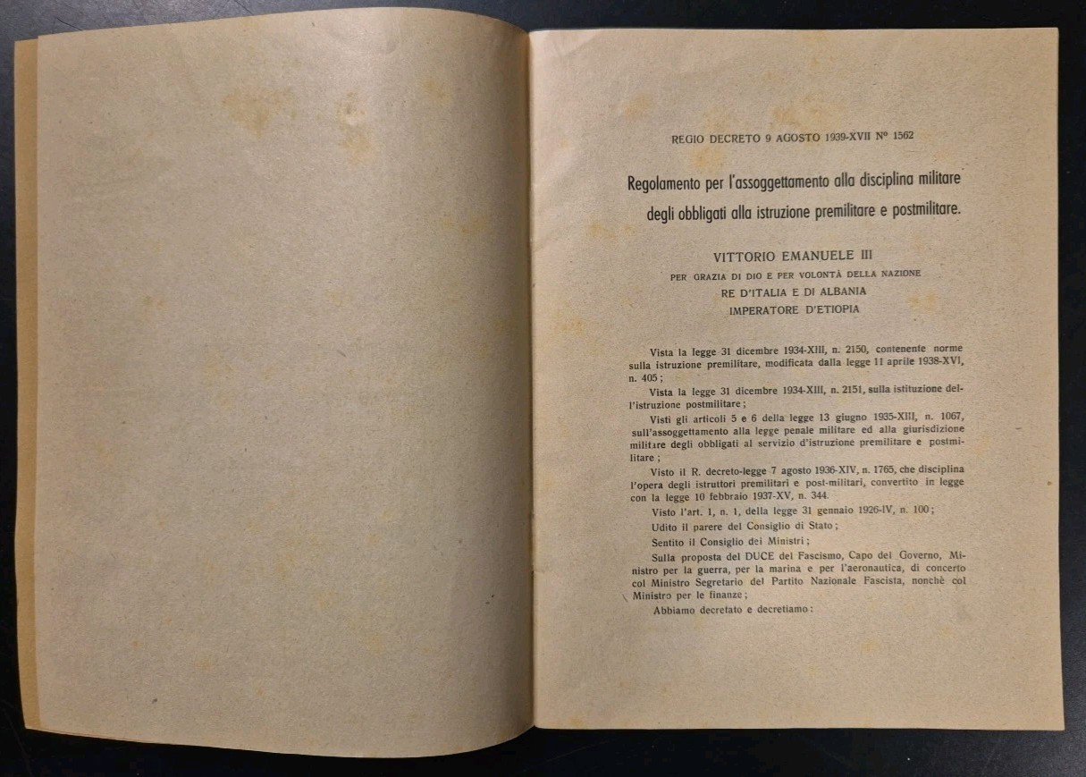 P.N.F. Gioventù Italiana del Littorio Comando Generale Regio Decreto 9 agosto 1939.