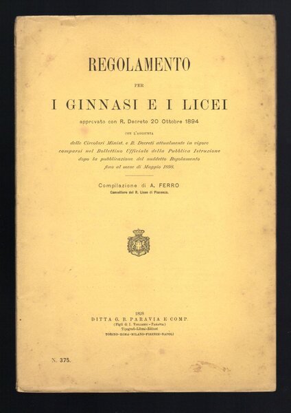 Regolamento per Ginnasi e Licei approvato con R. decreto 20 ottobre 1894