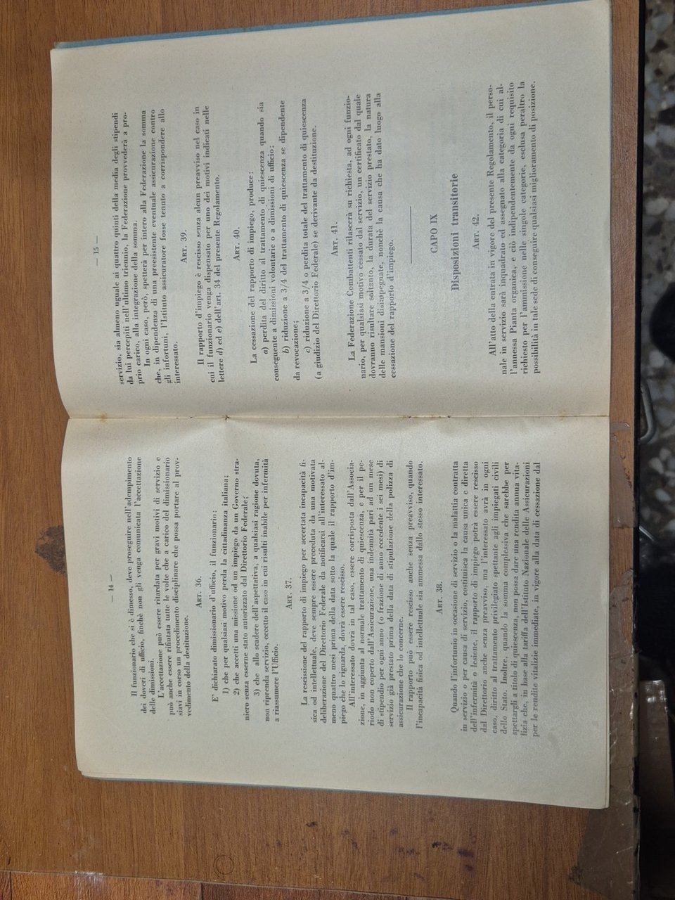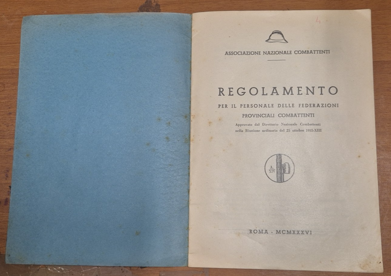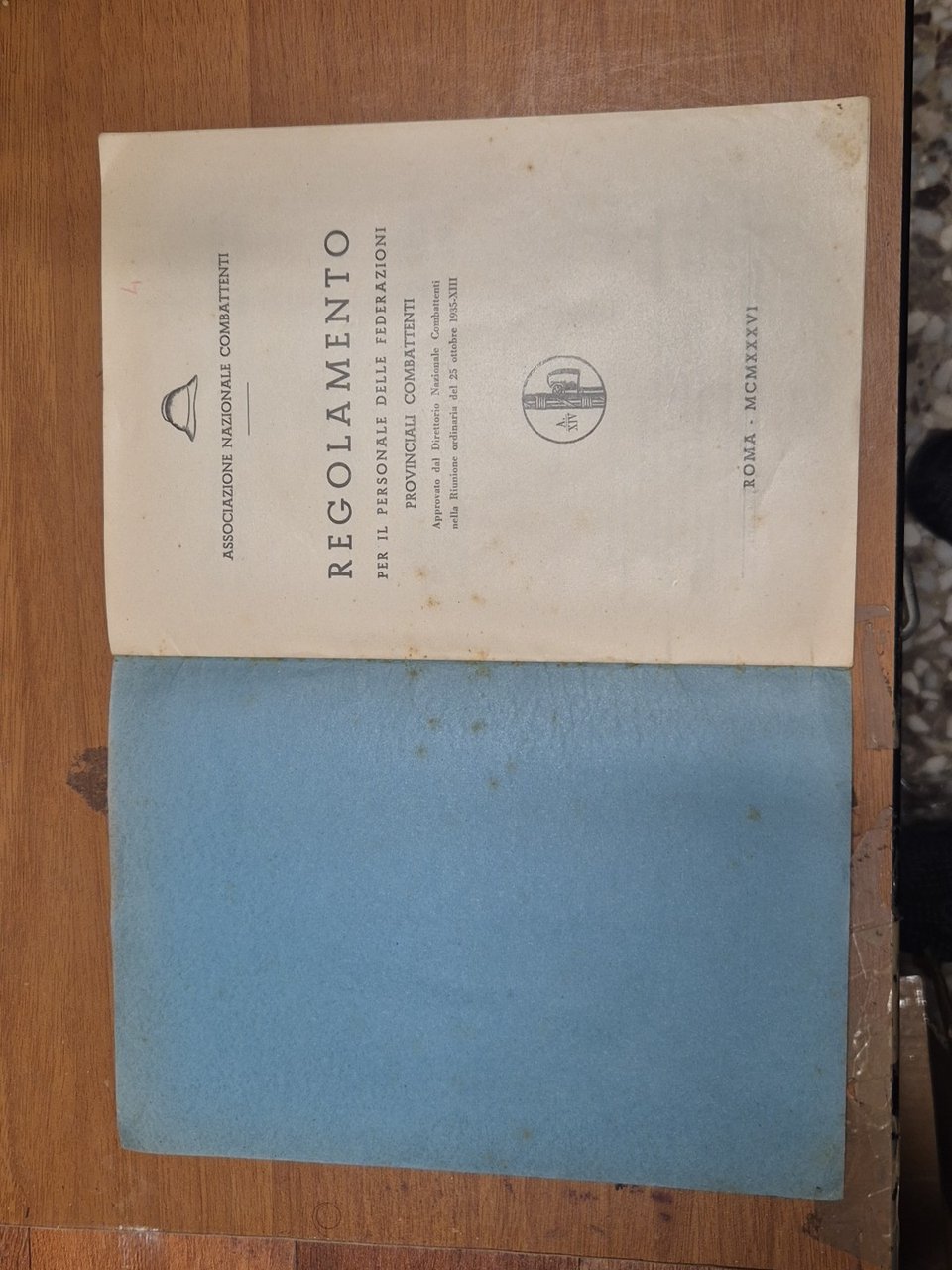REGOLAMENTO PER IL PERSONALE DELLE FEDERAZIONI PROVINCIALI COMBATTENTI 1936 libr