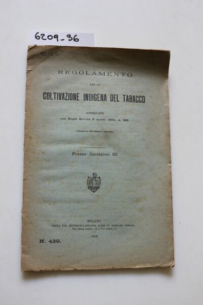 Regolamento per la coltivazione indigena del tabacco. Approvato con Regio decreto 9 agosto 1910, n. 666