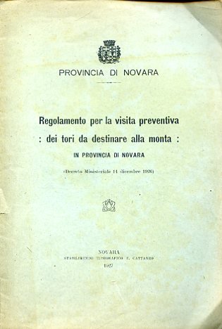 Regolamento per la visita preventiva dei tori da destinare alla monta in Provincia di Novara (Decreto Ministeriale 14 dicembre 1926)