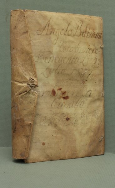 Due opere in un volume in-8ø; 116 pp., 72 pp.; legatura coeva "a registro" in tutta pergamena perfettamente conservata (salvo il laccio di chiusura mancante), con grande firma di possesso ai piatti: "Angelo Beltrammi Carabiniere a Cavallo del 1816. Compagnia scelta - Angelo Beltrami Carabiniere. Benevento l? 21 luglio 1816(?). Carabiniere a cavallo". Occasionali, assai lievi punti di fioritura. Bell'esemplare. Prima edizione di entrambi i testi, che costituiscono il documento fondativo del corpo dei Carabinieri pontifici, istituito da Papa Pio VII con notificazione del luglio 1816. L'esemplare Š di particolare interesse perch‚ Š la copia "d'uso" di un carabieniere del tempo con una rara legatura portatile "a registro" perfettamente conservata. Dopo il periodo napoleonico e il congresso di Vienna, il Papa torn• a Roma e riorganizz• le guardie: il volume contiene il Regolamento del corpo e il testo di Galassi con le indicazioni generali di comportamento. I carabinieri, che andavano a sostituire gli "sbirri", si distinguevano dalle Guardie svizzere poich‚ operavano per la sicurezza su tutti i possedimenti pontifici e garantivano un controllo generalizzato sul territorio. Rossetti 10426 considera i due testi sotto uno stesso record. GALASSI VINCENZO. Sentimenti morali e brevi istruzioni per un carabiniere. - Roma, Vincenzo Poggioli Stampatore della Rev. Cam. Apost., 1816.