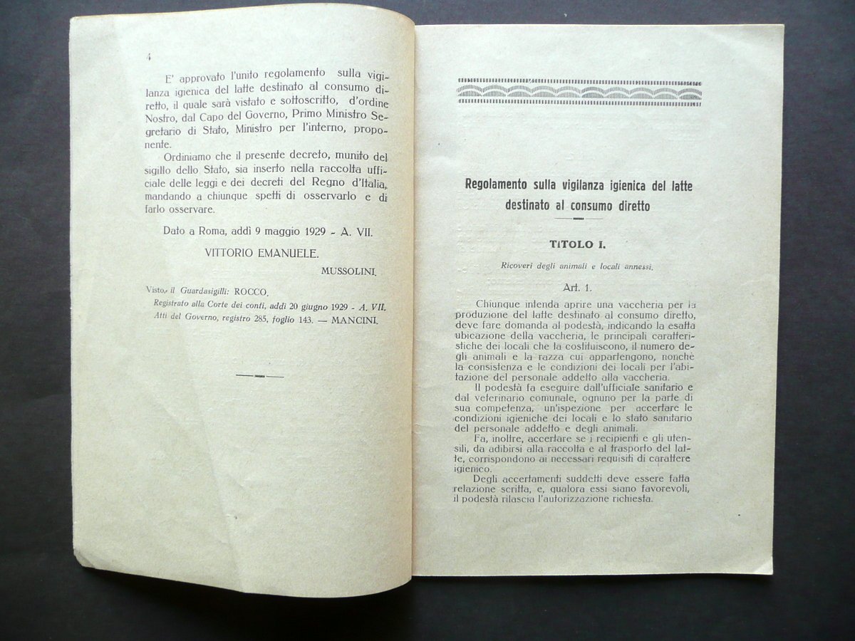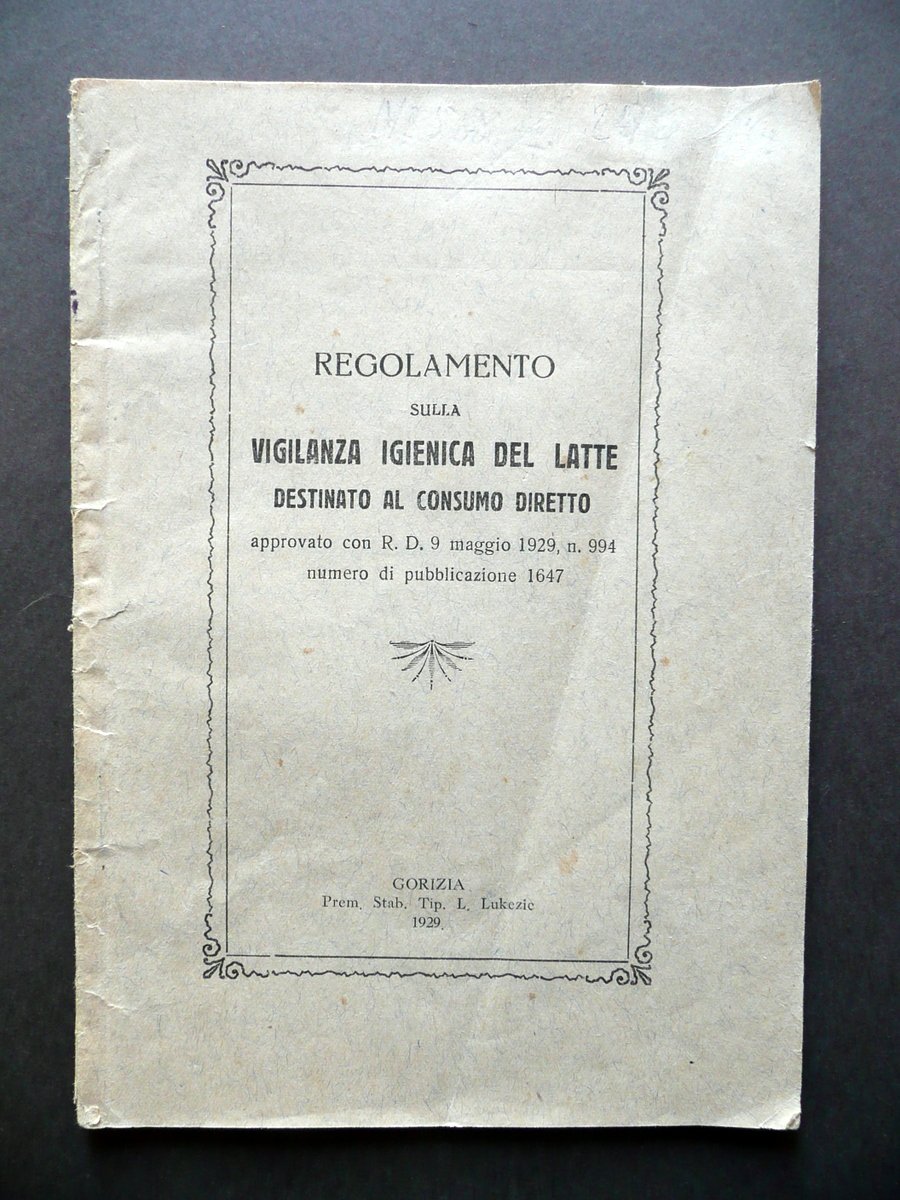 Regolamento sulla Vigilanza Igienica del Latte Consumo Diretto Gorizia 1929