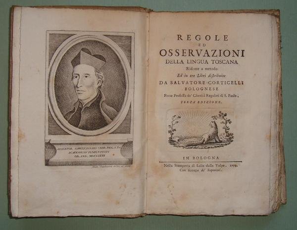 Bologna, dalla Volpe, 1775. In 8vo; pp.338. Cart. coevo. In antiporta ritratto dell’autore inciso. Gamba, 2210