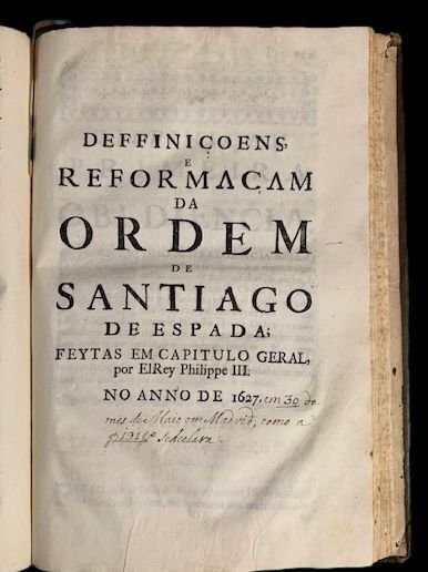 Regra estatutos diffinigoens e reformac,am da ordem & Cavallaria de Santiago da Espada.