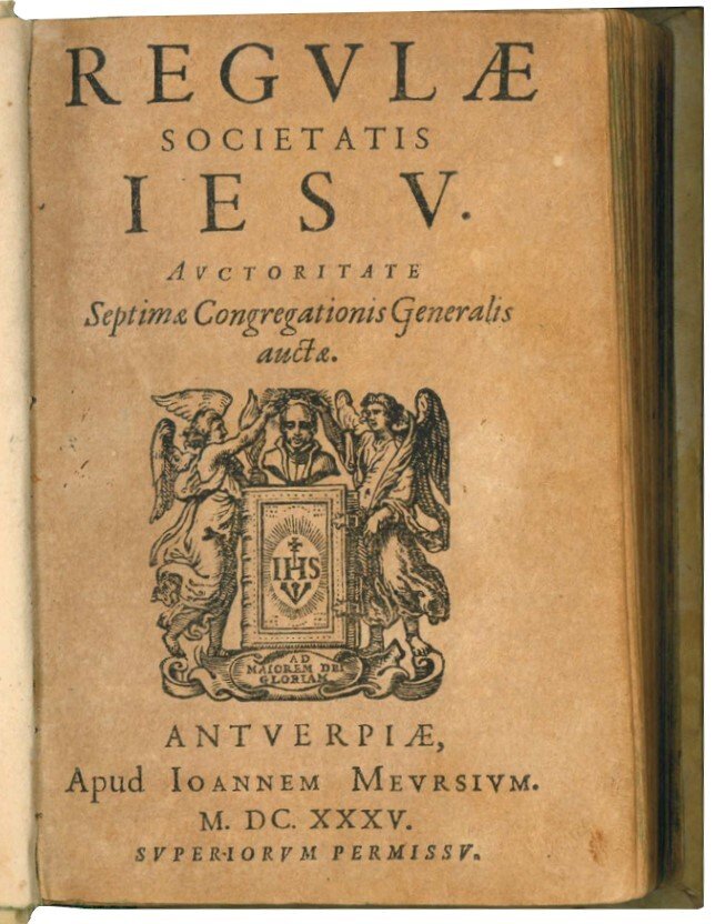L'opera contiene la Costituzione della Società d Gesù, le regole comuni e quelle specifiche, ad esempio per i sacerdoti, per le missioni, per i rettori, per i pellegrini, ma anche quelle per cucinare ecc. Infine, con propria intitolazione da R2v: Epistola S.P.N. Ignatij de virtute obedientiae.